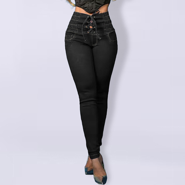 These jeans feature a trendy lace-up design on the flattering high-rise waist which creating a stylish and edgy look that captures the essence of urban style. Hope you like it.