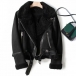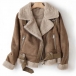 Street Fashion Lapel Long Sleeve Slant Zipper Plush Lined Warm Suede Jacket