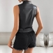 Street Fashion Lapel Sleeveless Artificial Leather PU Vest