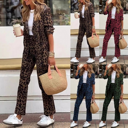 Street Fashion Leopard Printed Two-piece Set Consist of Blazer and Pants