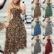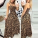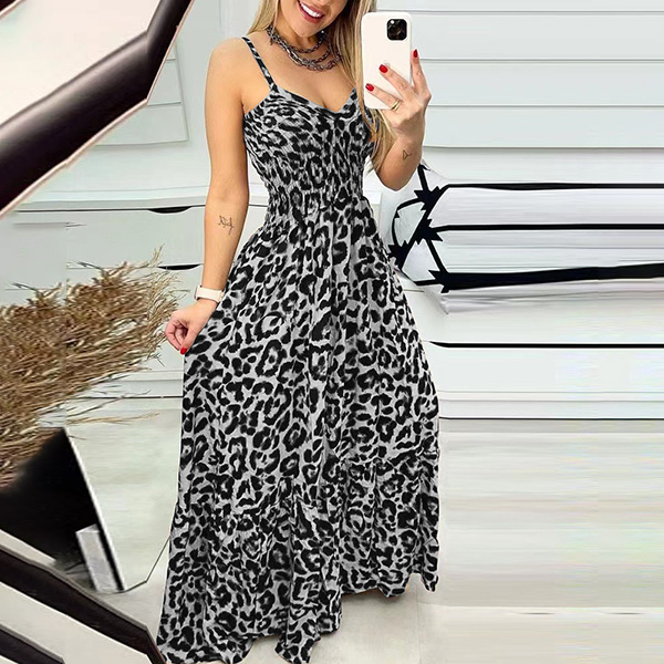 Street Fashion Leopard Printed V-neck High-waist Maxi Dress