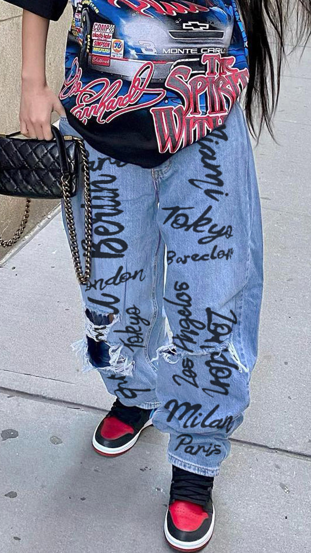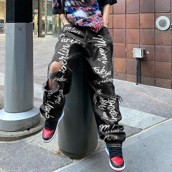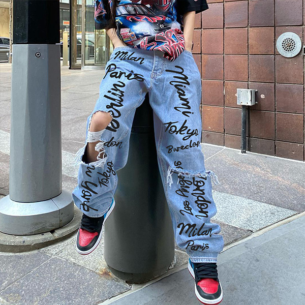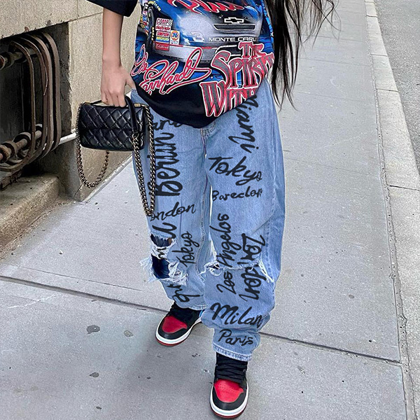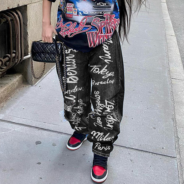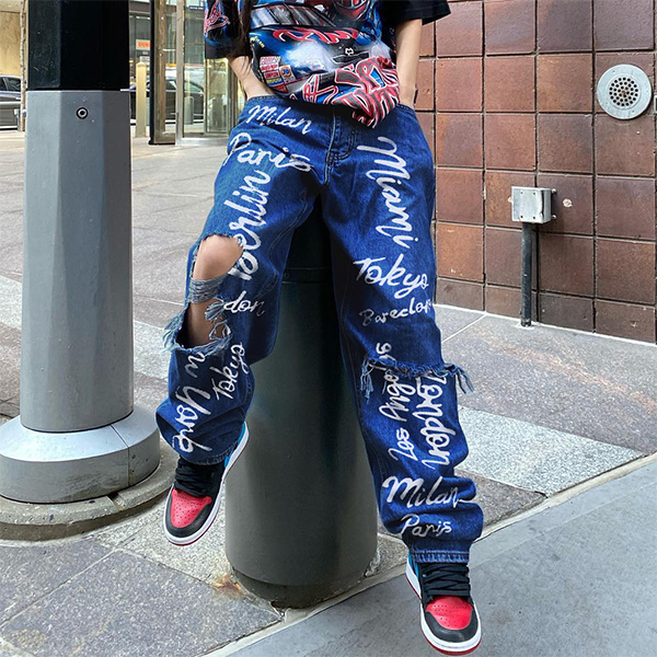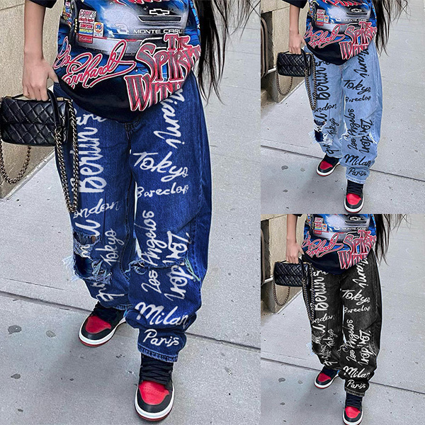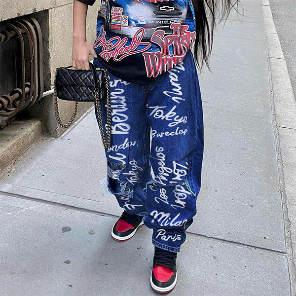 The loose, relaxed fit of these denim pants gives them a laid-back, street style-inspired look. They have a comfortable, slouchy silhouette.