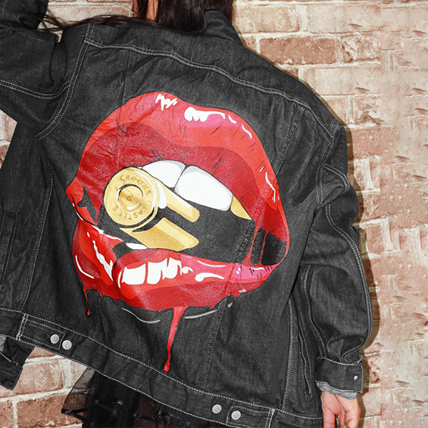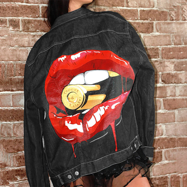 Crafted with high-quality denim fabric, this jacket offers a comfortable and fashionable fit. The lip print detailing adds a bold and playful element, making it a standout piece in your collection. Wanna have a try?