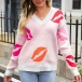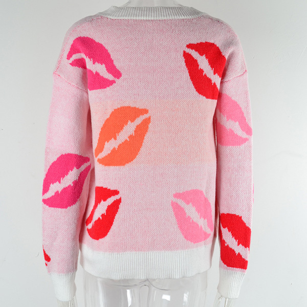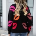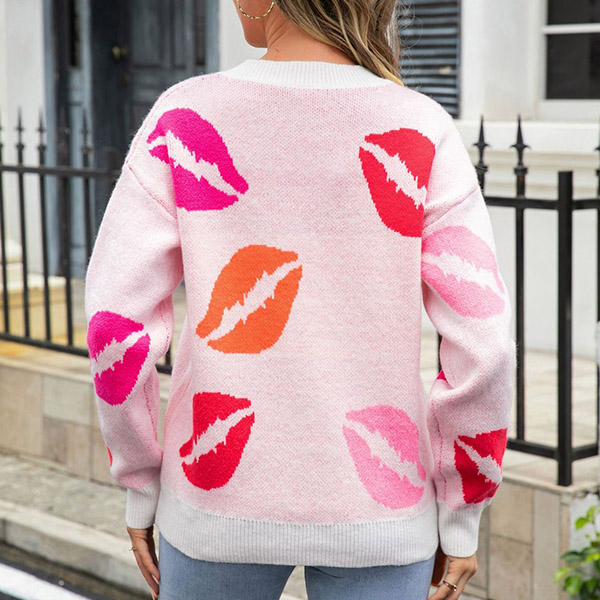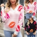 This sweater combines street style and playful design for a trendy and eye-catching look. The lip print pattern adds a fun and edgy element, while the V-neckline offers a classic and flattering touch. Wanna have a try?