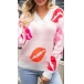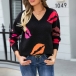 Street Fashion Lip Printed V-neck Knitted Sweater