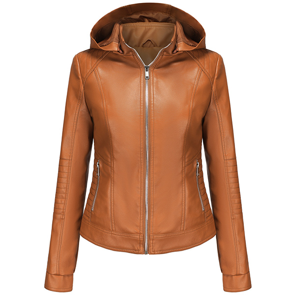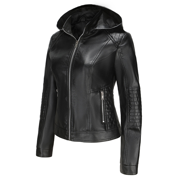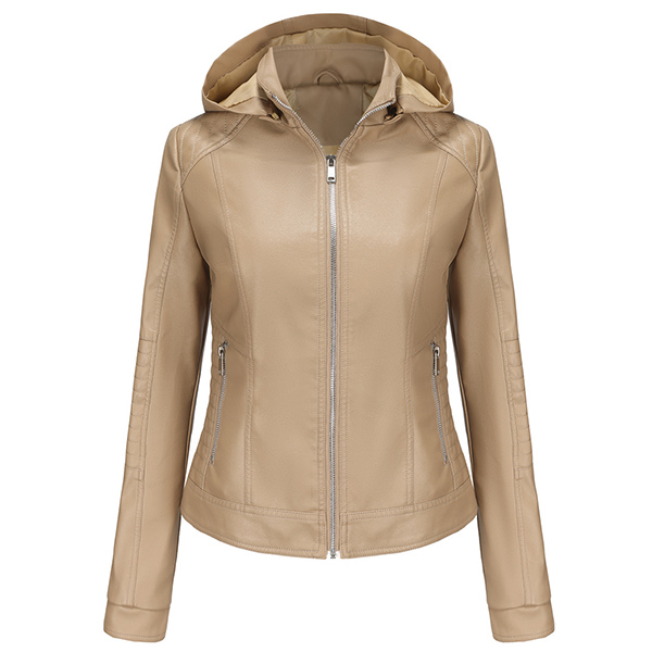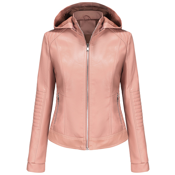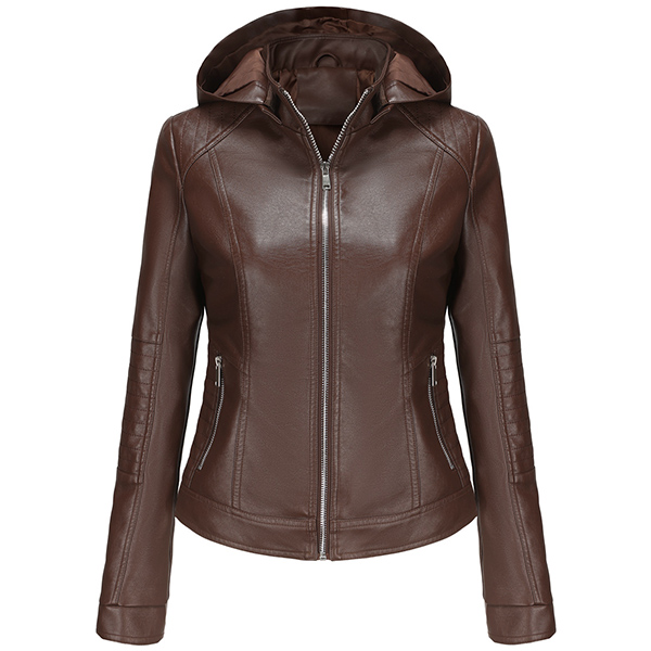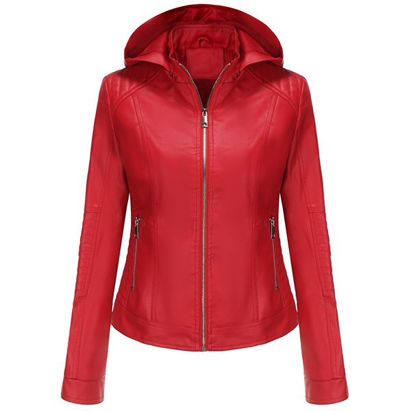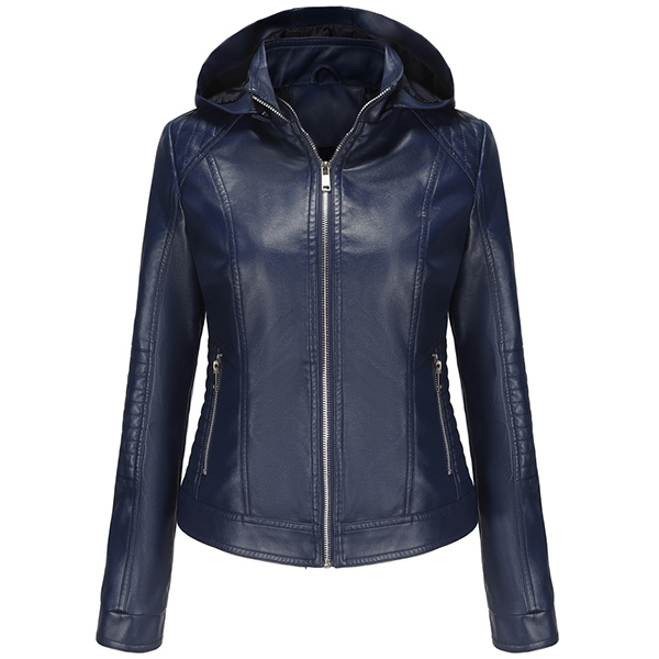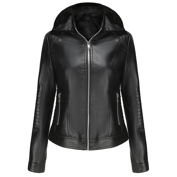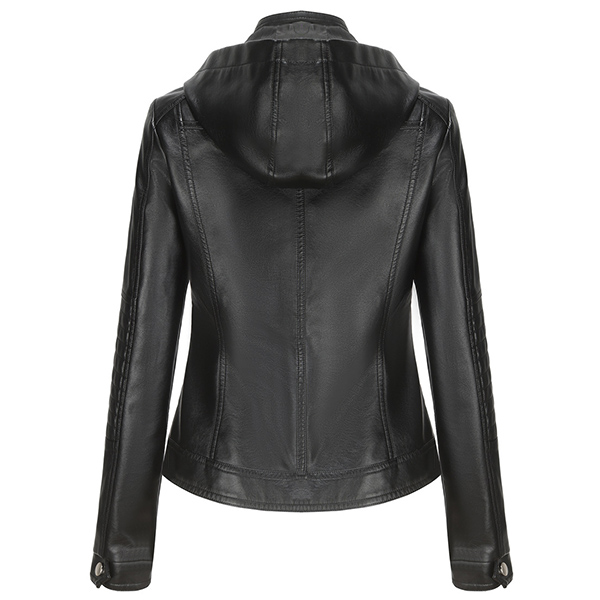 Street Fashion Long Sleeve Zipper Detachable Hooded Artificial Leather PU Jacket