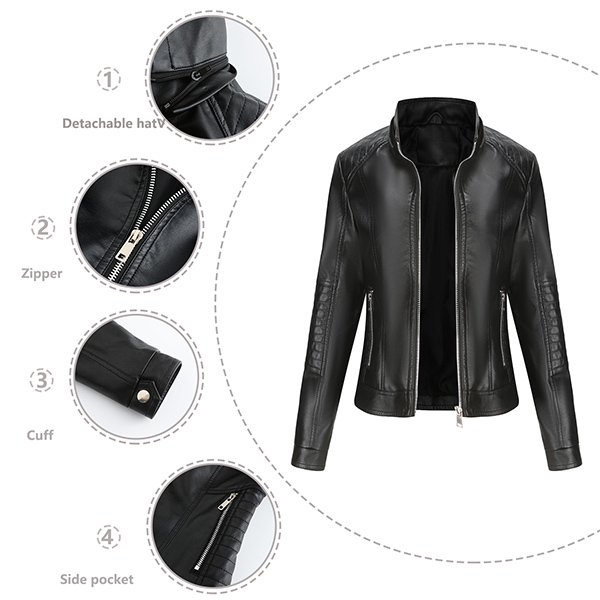 This Artificial Leather PU Jacket is a stylish and edgy piece that combines street fashion with a leather-inspired look. It features a long-sleeve design with a zipper closure, offering a sleek and modern aesthetic. It also includes a detachable hood, adding versatility to the jacket's style. Wanna have a try?