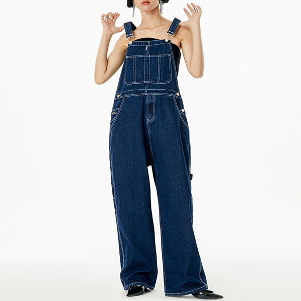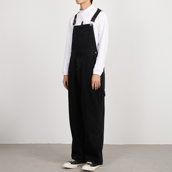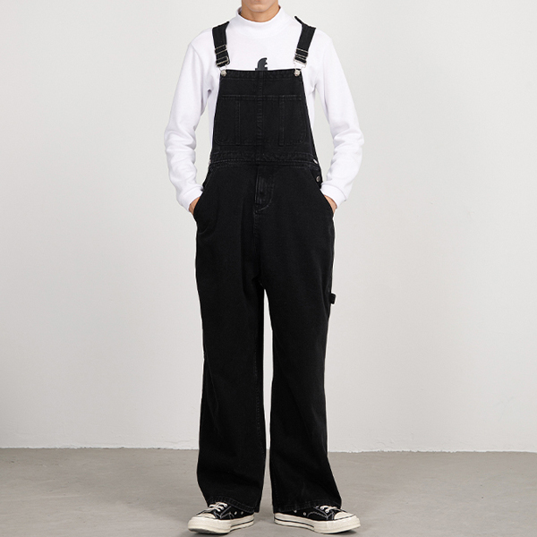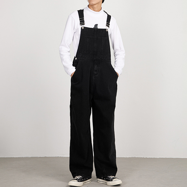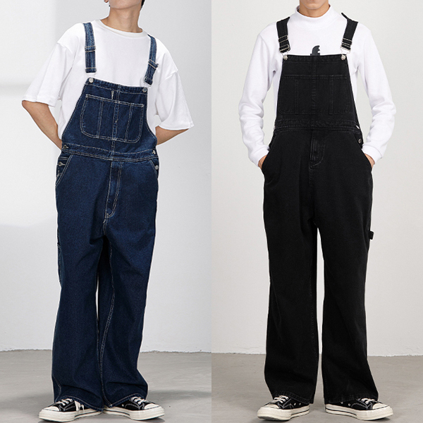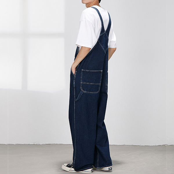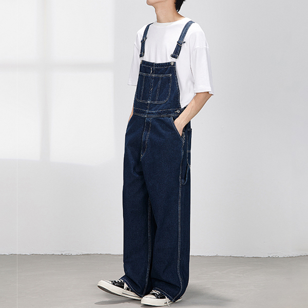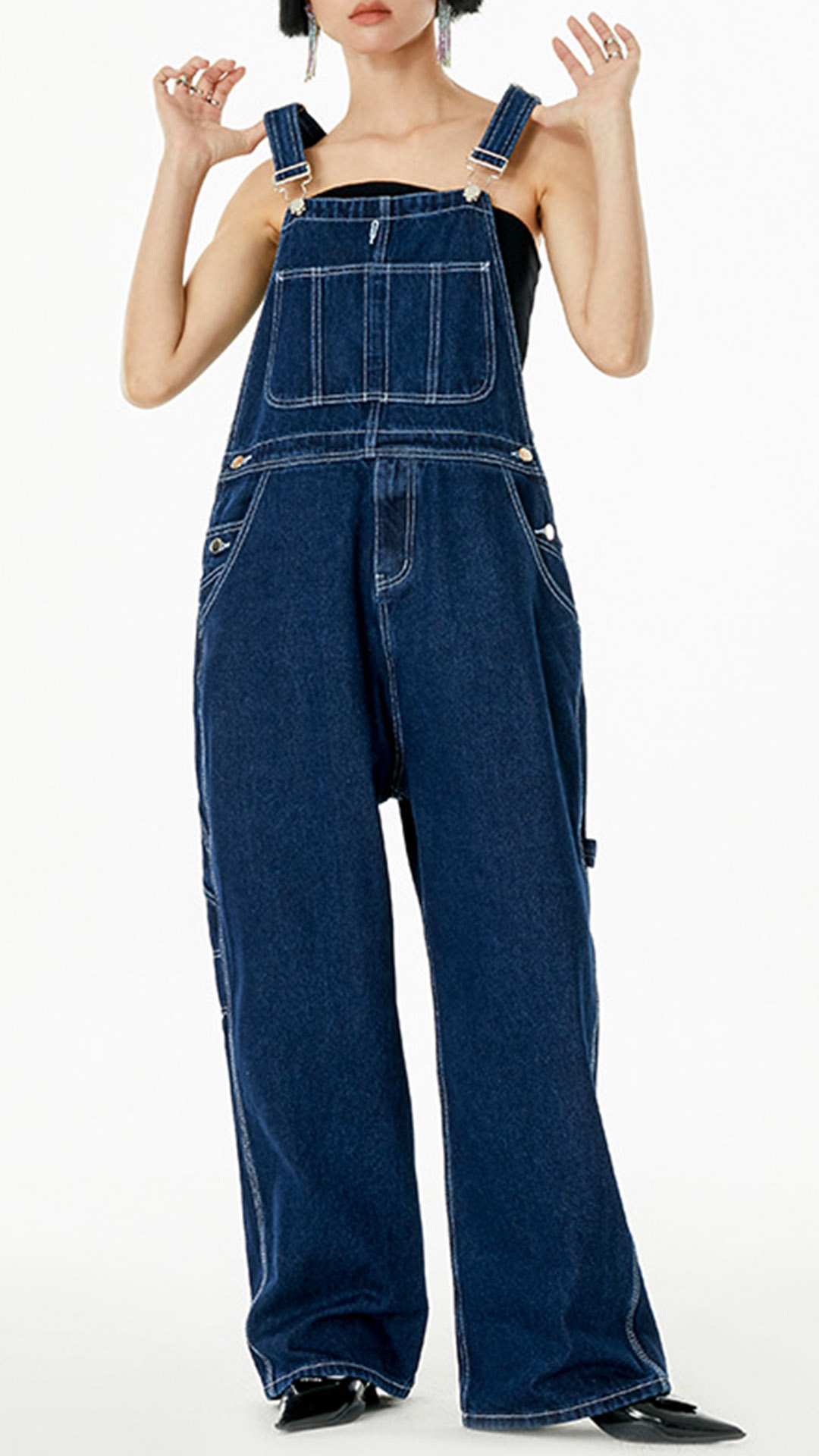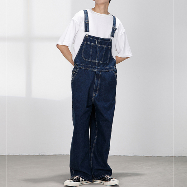 Street Fashion Loose Straight-cut Denim Suspender Jumpsuit for Couple