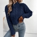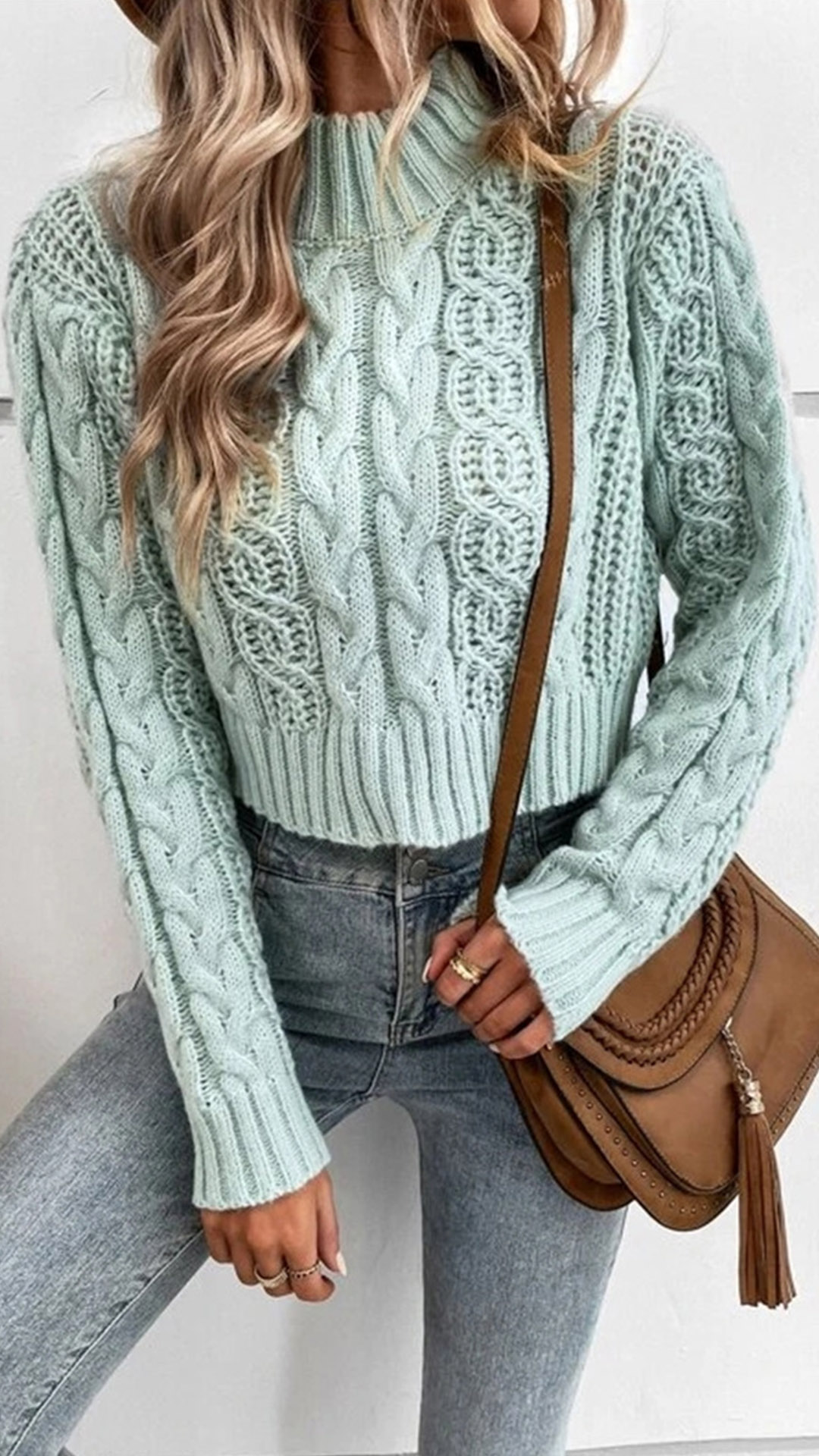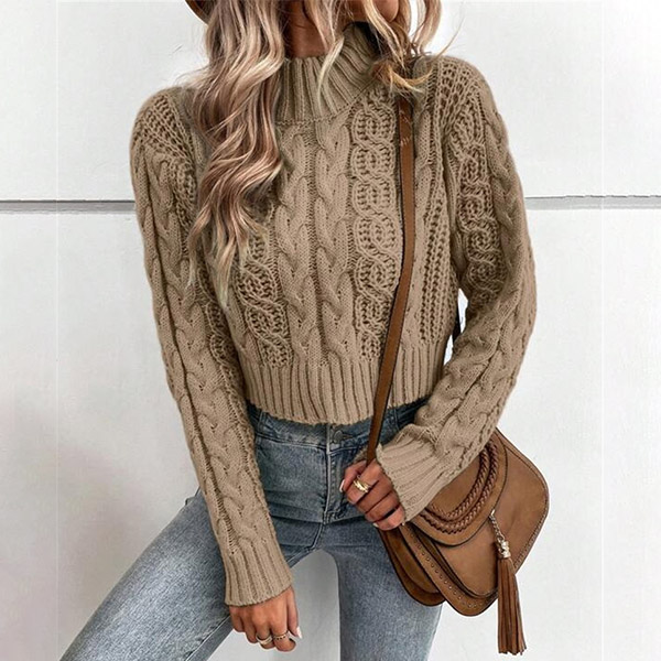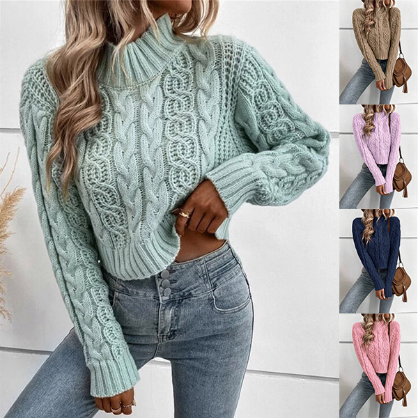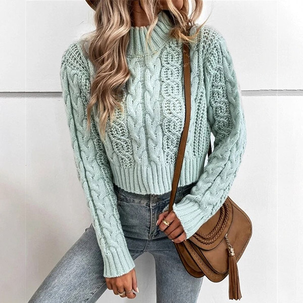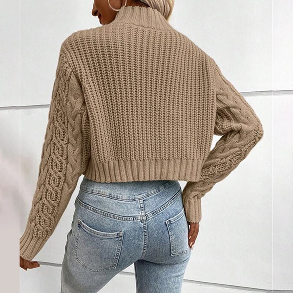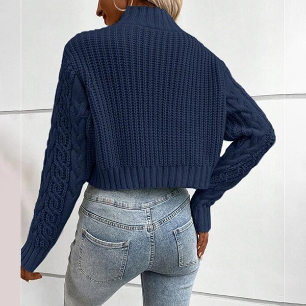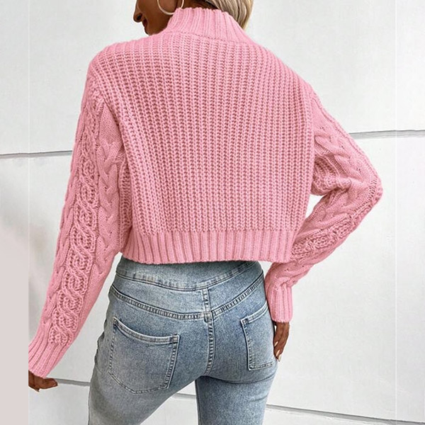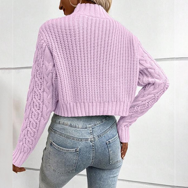 Street Fashion Mock Neck Long Sleeve Cable Crop Sweater
