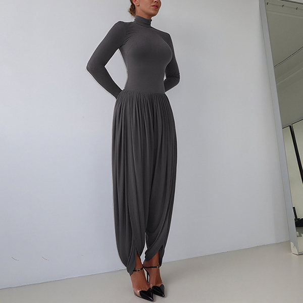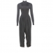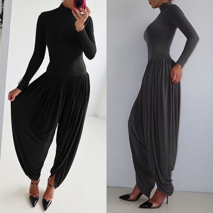 Street Fashion Mock Neck Long Sleeve Ruched Jumpsuit