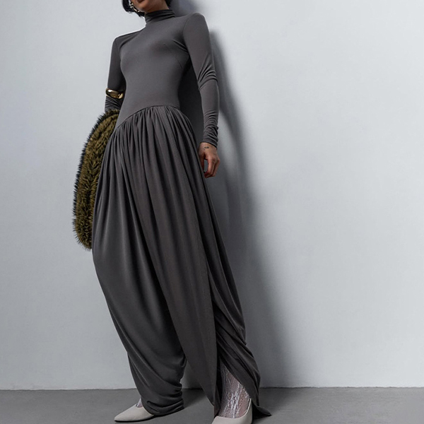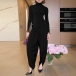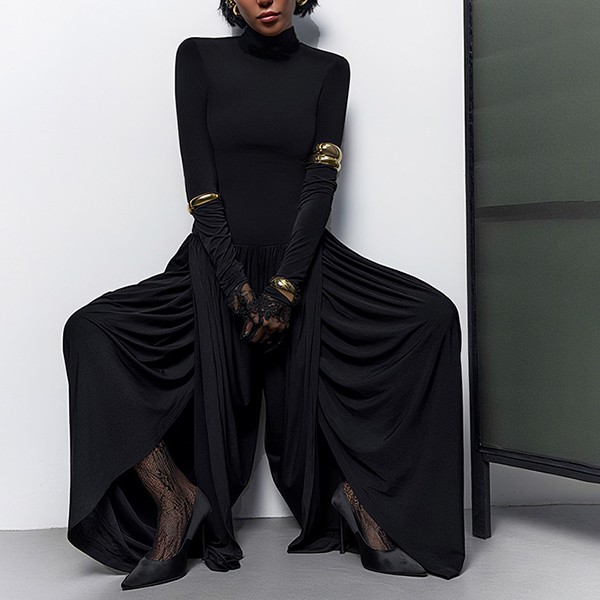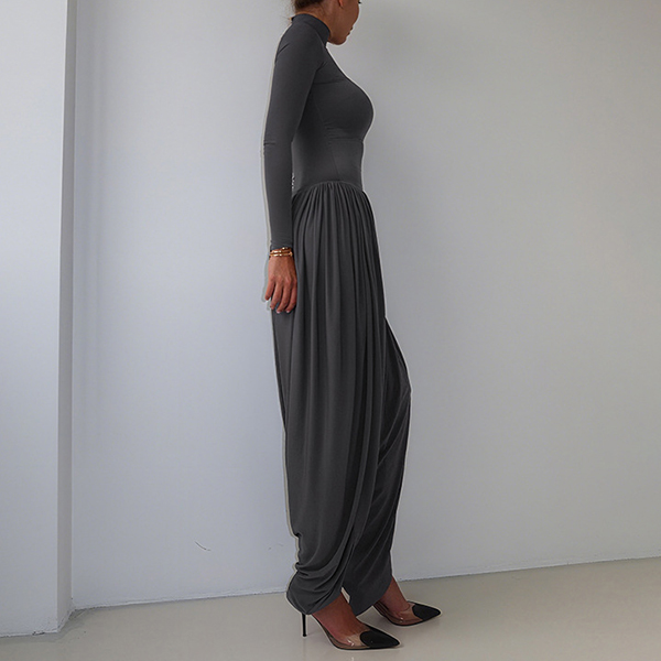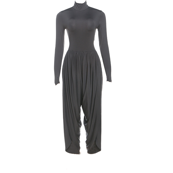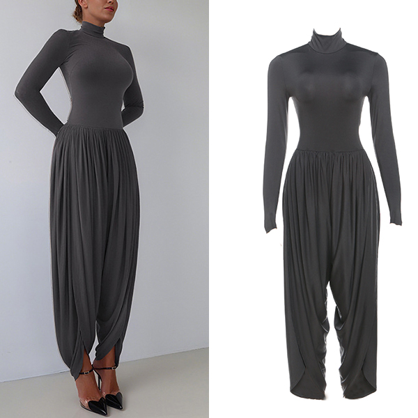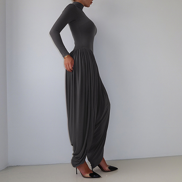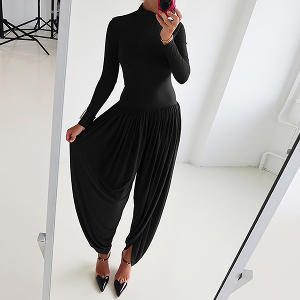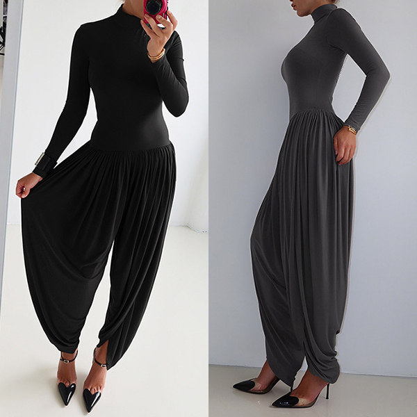 This urban jumpsuit features sophisticated mock neck styling with contemporary ruched detailing and streetwear edge for modern casual sophistication. Hope you like it.