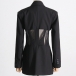 Ce blazer tendance et chic arbore un design unique avec une épissure en gaze à la taille, apportant une touche d'audace et de sophistication à votre tenue. Le détail de la taille cintrée crée une silhouette flatteuse et apporte une modernité à cette pièce classique. Le col à revers cranté et les manches longues confèrent au blazer un look soigné et structuré, idéal pour ajouter une touche d'élégance à votre ensemble. Prêt à essayer ?