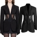 Blazer cintré à manches longues en gaze épissée avec revers crantés pour un style urbain tendance