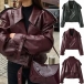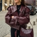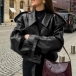 This is a trendy and edgy outerwear jacket that adds a cool and contemporary vibe to any outfit. The notch lapel design adds a modern and stylish touch, while the buckle detailing, and crop length make this jacket a versatile and trendy option for adding a touch of street style to your wardrobe. It is perfect for layering over high-waisted bottoms for a chic and fashion-forward outfit.