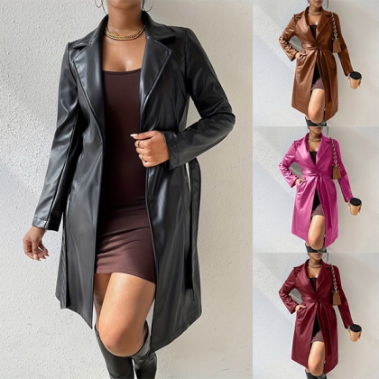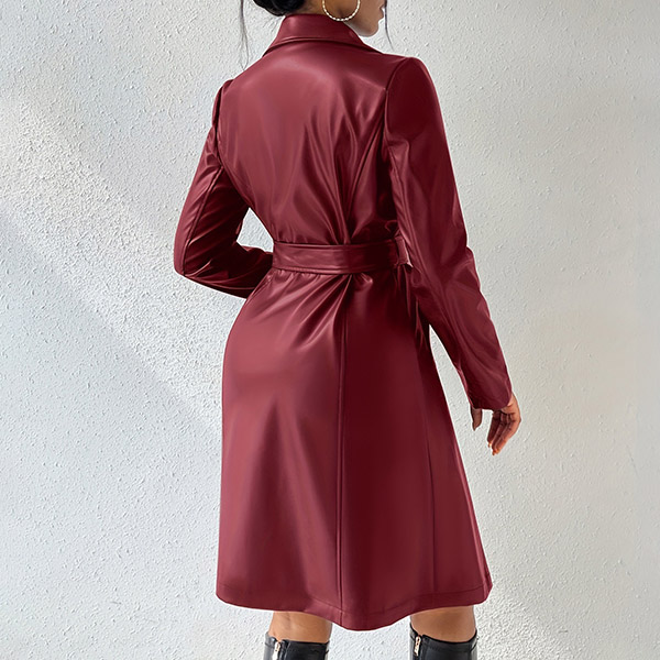 Crafted from high-quality artificial leather PU fabric, this jacket offers a sleek and edgy aesthetic. It features a notch lapel, long sleeves, and a self-tie waist, creating a fashion-forward and versatile outerwear piece. Complete your street fashion look by pairing this jacket with jeans, trousers, or a skirt.