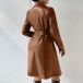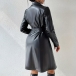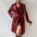 Street Fashion Notch Lapel Long Sleeve Self-tie Artificial Leather PU Jacket for Women