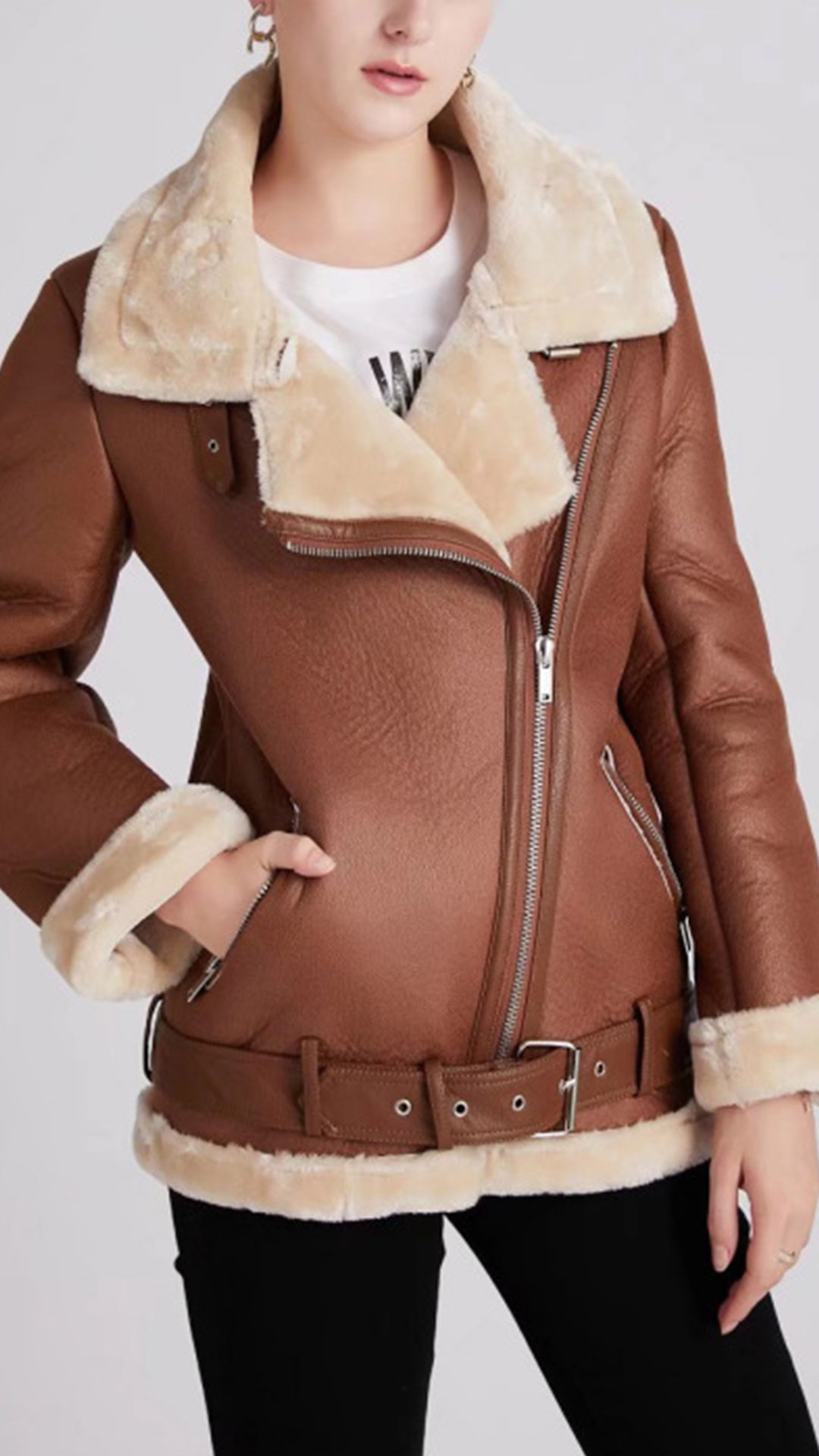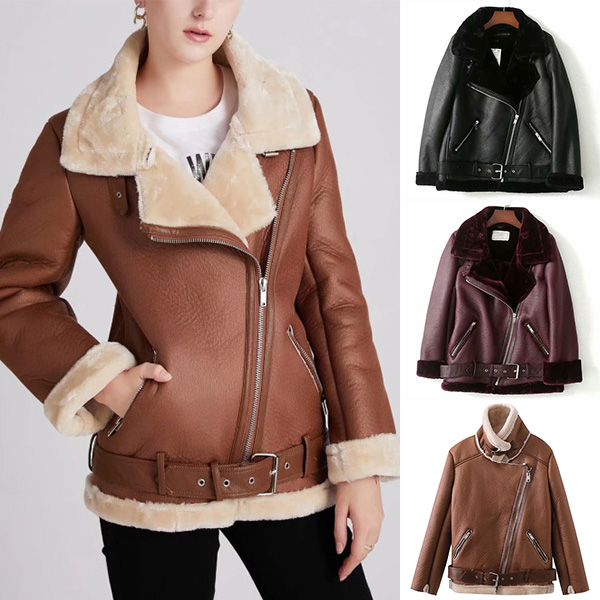 Crafted with meticulous attention to detail, this jacket features a notch lapel design that adds a touch of sophistication and uniqueness. The slant zipper and buckle details create a bold and trendy look, exuding a rebellious and fashion-forward vibe. The plush lining adds warmth and coziness, making this jacket perfect for colder seasons or cool evenings. It provides a comfortable and snug fit while keeping you stylish.