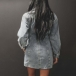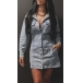 Street Fashion Old-wash Stand Collar Front Button Chest Pockets Long Sleeve Polo Denim Dress