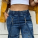 Featuring suspenders, these jeans exude a cool and rebellious vibe. The suspenders add a stylish and eye-catching detail, creating a standout and fashion-forward look.