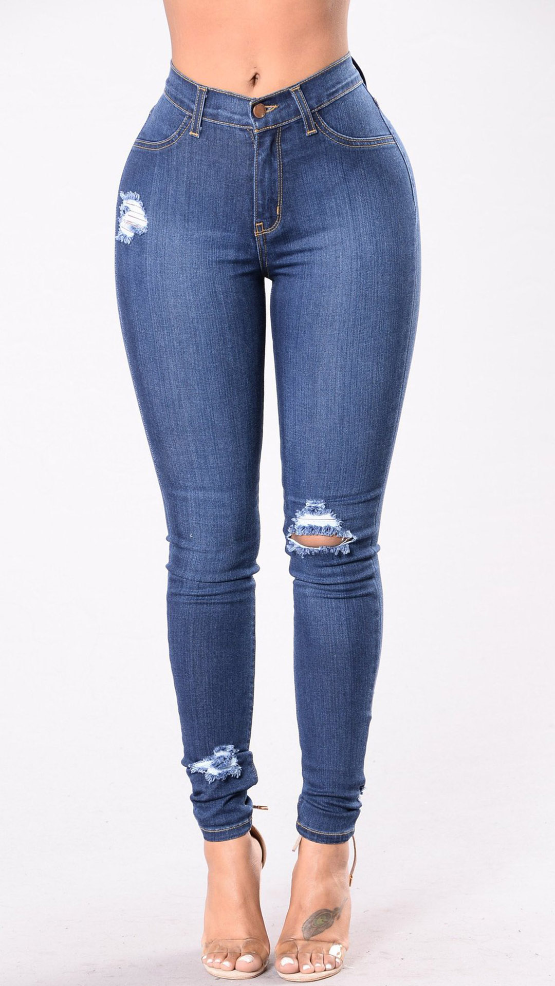 Street Fashion Old-washed Distreeted High-rise Skinny Jeans