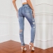 Street Fashion Old-washed Distressed Buttoned High-rise Denim Skinny Jeans