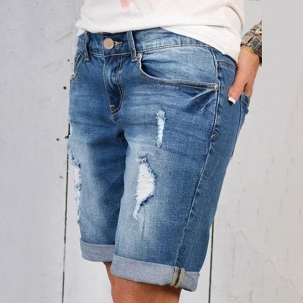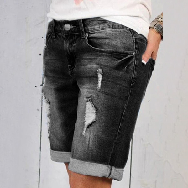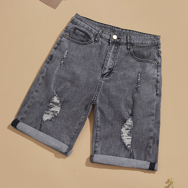 Street Fashion Old-washed Distressed Denim Shorts for Men