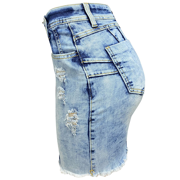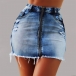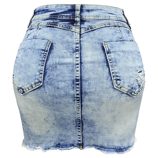 Street Fashion Old-washed Distressed Frayed Hemline Denim Mini Skirt