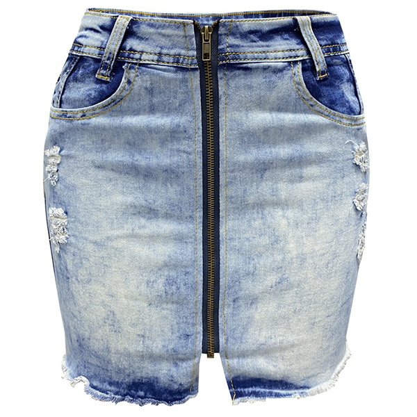 This ia a trendy and edgy denim skirt that combines an old-washed denim fabric, distressed details, and a frayed hemline for a fashionable and street-style inspired look. Wanna have a try?
