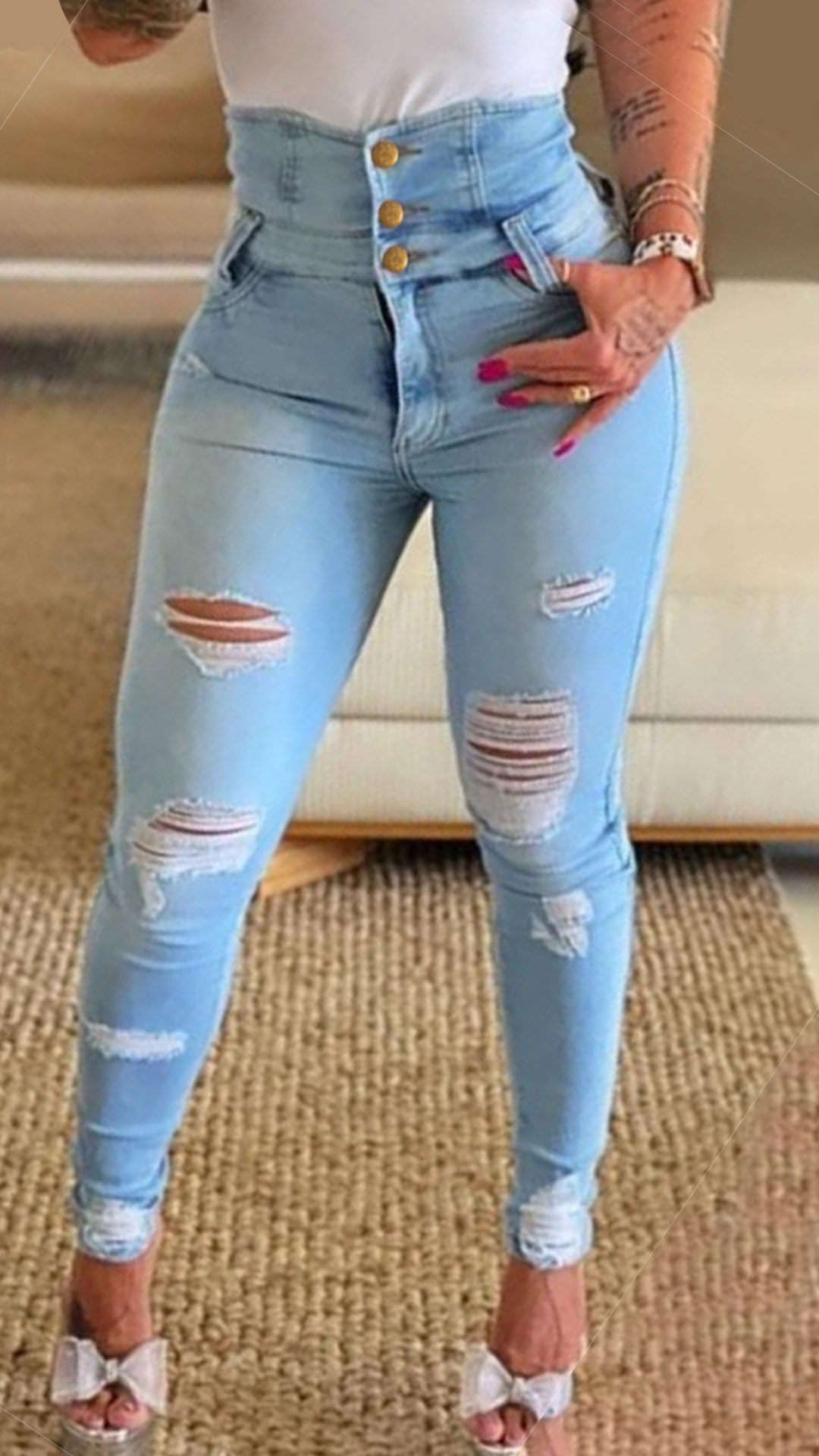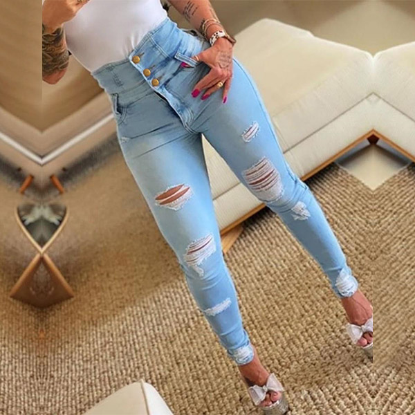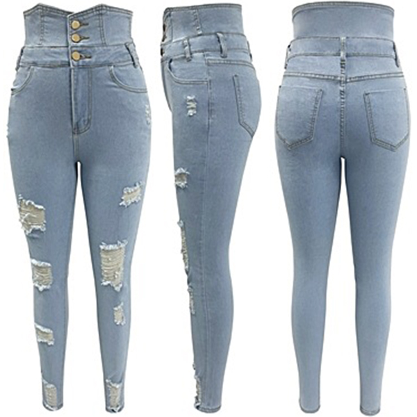 Street Fashion Old-washed Distressed High-rise Skinny Denim Jeans