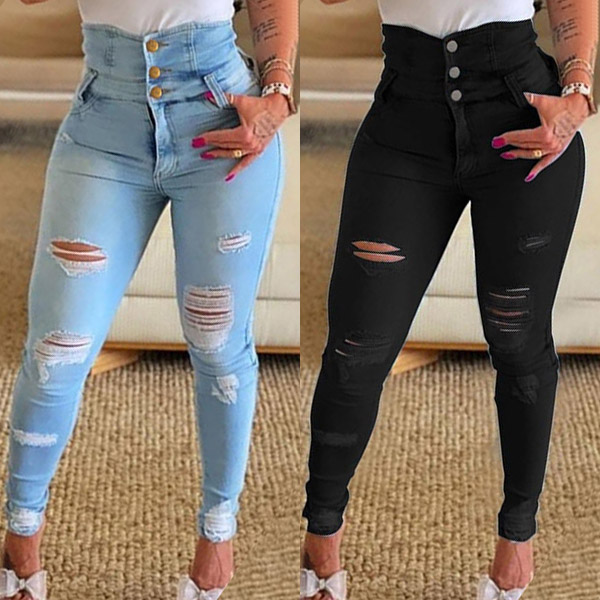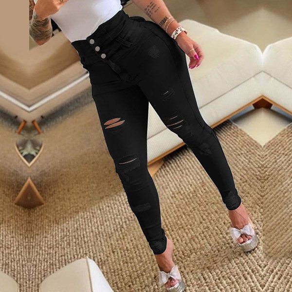 How about this skinny jeans? The distressed details create a cool and edgy vibe, while the high-rise skinny fit is flattering and versatile, accentuating your curves and creating a sleek silhouette. It offers a modern and fashionable look, perfect for pairing with various tops and shoes.
