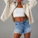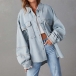 Street Fashion Old-washed Frayed Stand Collar Long Sleeve Patch Pockets Rivet Loose Denim Jacket