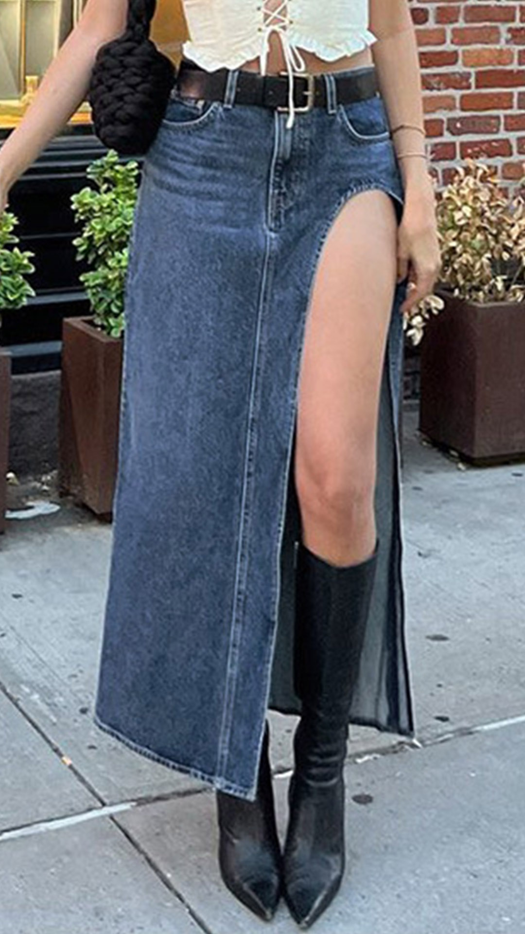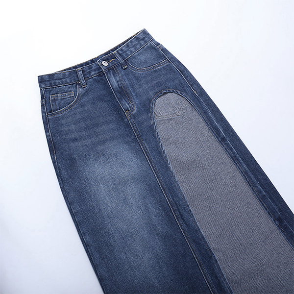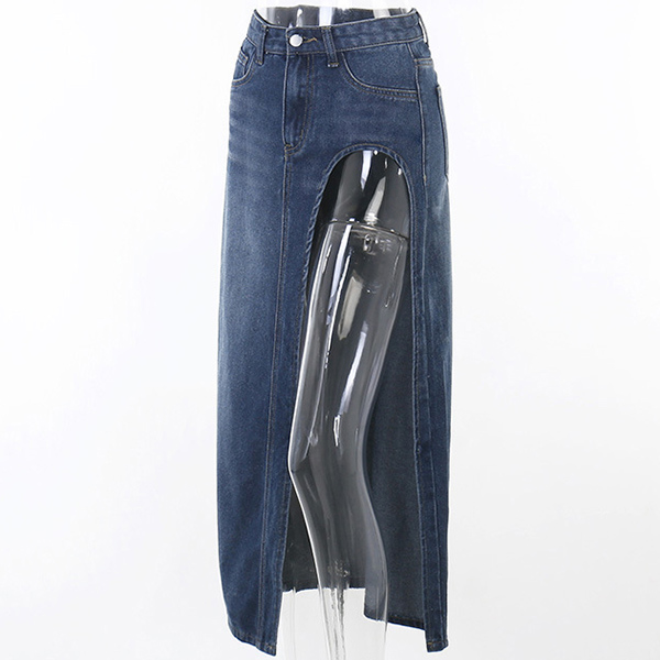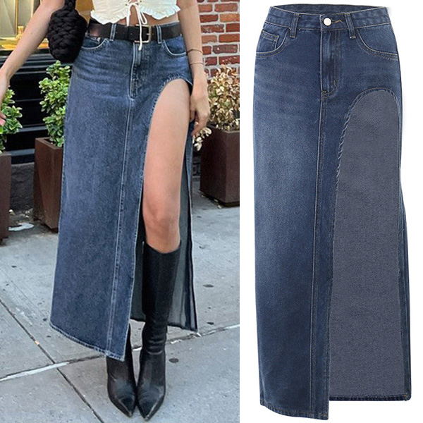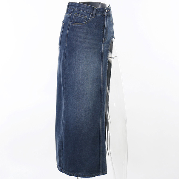 Street Fashion Old-washed High Slit Denim Skirt