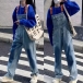Street Fashion Old-washed Loose Denim Suspender/Denim Jumpsuit
