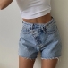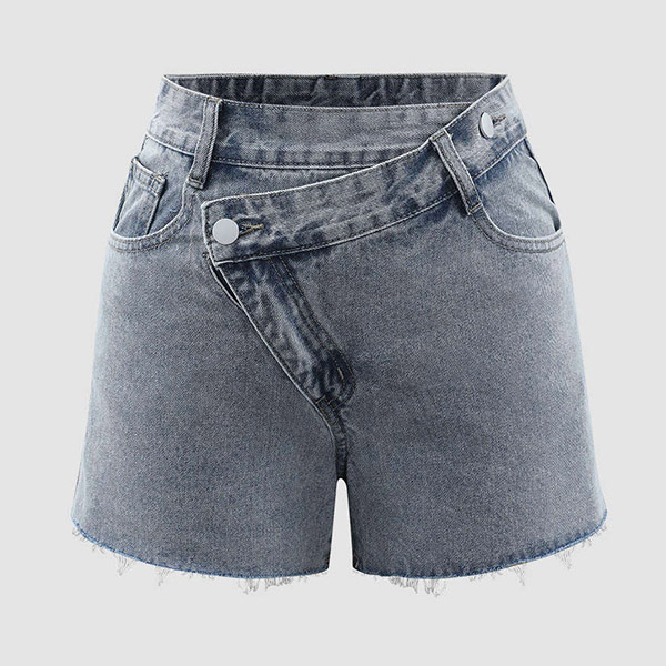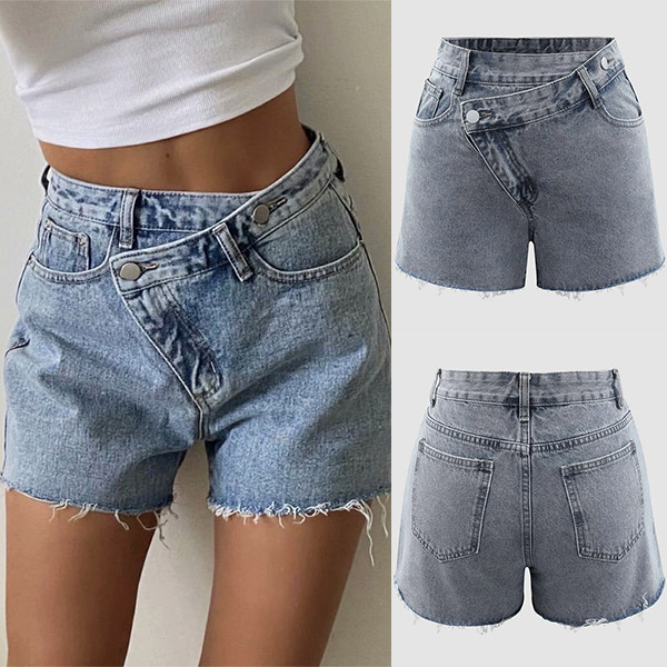 Street Fashion Old-washed Oblique Waist Frayed Hemline Denim Shorts