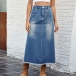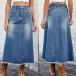 Street Fashion Old-washed Patch Pockets Elastic Waist Frayed Hemline Denim Skirt