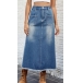 This is a trendy and edgy skirt that features an old-washed denim fabric, patch pockets, an elastic waistband, and a frayed hemline for a cool and street-style look. Pair it with a graphic tee and sneakers for a laid-back and casual look.