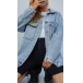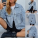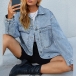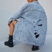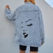 Street Fashion Old-washed Patch Pockets Face Printed Loose Denim Jacket