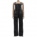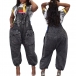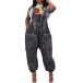 Street Fashion Old-washed Patch Pockets Oversize Denim Suspenders Jumpsuit