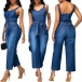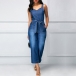 Street Fashion Old-washed Self-tie Denim Jumpsuit