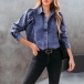 This denim shirt features an old-washed design, giving it a worn-in and distressed look that adds character and authenticity to your outfit. The stand collar adds a touch of modernity and uniqueness, setting it apart from traditional denim shirts. The long sleeves provide coverage and can be rolled up for a more casual and relaxed look. Pair it with jeans or shorts for a double denim look, or layer it over a t-shirt or dress for a trendy and edgy ensemble.