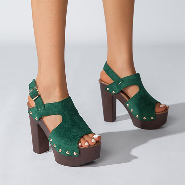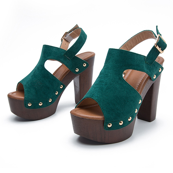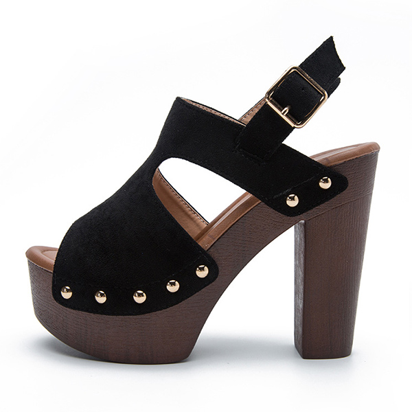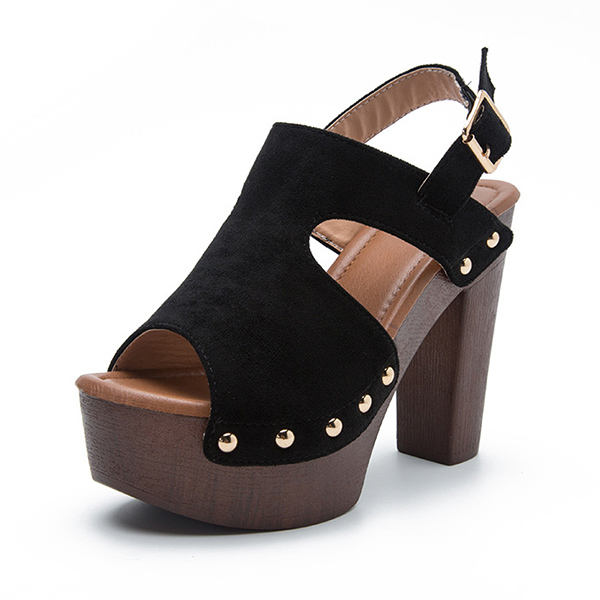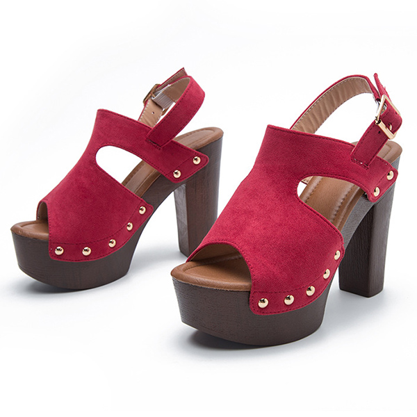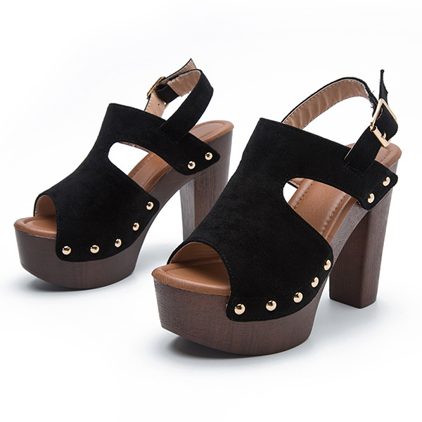 Street Fashion Open-toe Cut Out Buckle Blocked Heeled Sandals