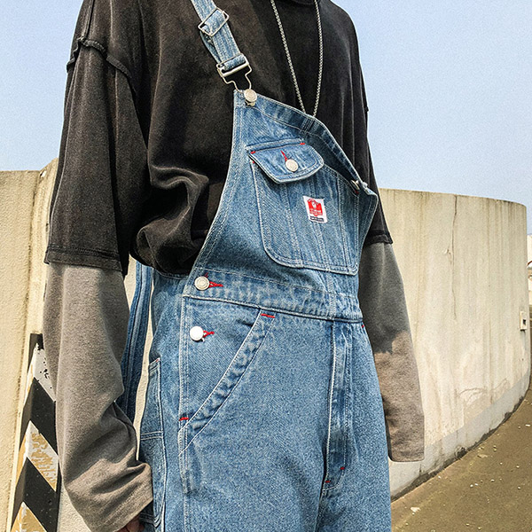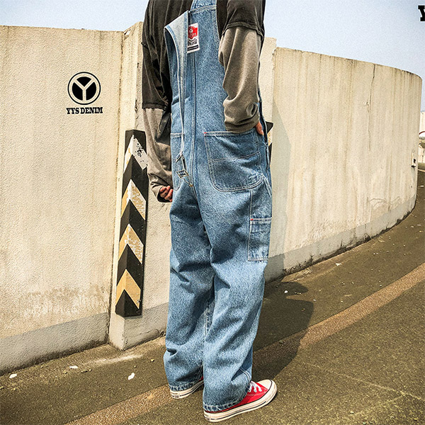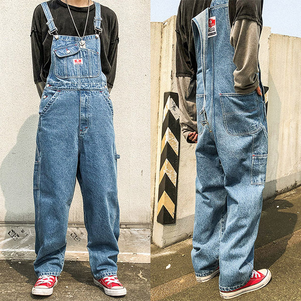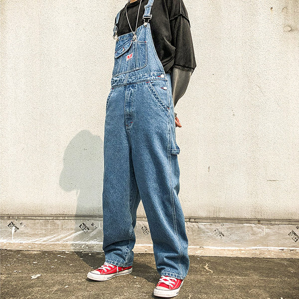 Street Fashion Patch Pockets Loose Old-washed Denim Jumpsuit for Men