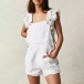 Street Fashion Patch Pockets Rolled Hemline Old-washed Denim Romper