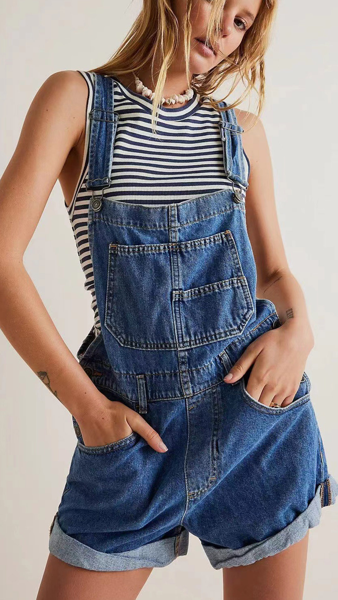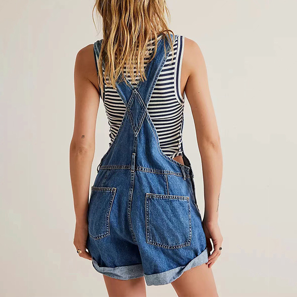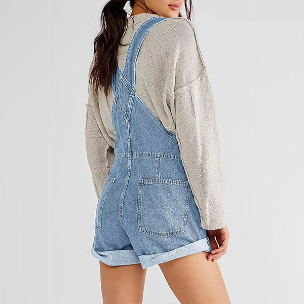 This is a trendy and versatile denim romper that exudes a cool and casual vibe. The old-washed denim material offers a vintage-inspired look with a worn-in feel, perfect for adding a touch of rugged charm to your outfit.