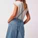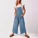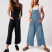 Street Fashion Patch Pockets Straight-cut Old-washed Suspender Denim Jumpsuit