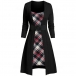 Street Fashion Plaid Spliced Round Neck Long Sleeve Mock-two-piece Dress