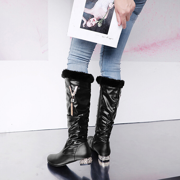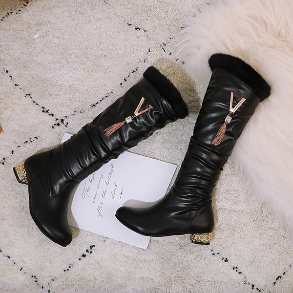 Street Fashion Plush Lined Tassel Artificial Leather PU Boots for Children