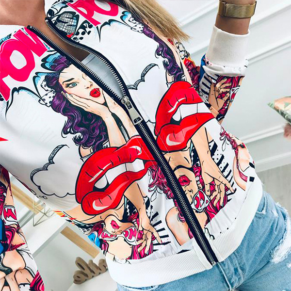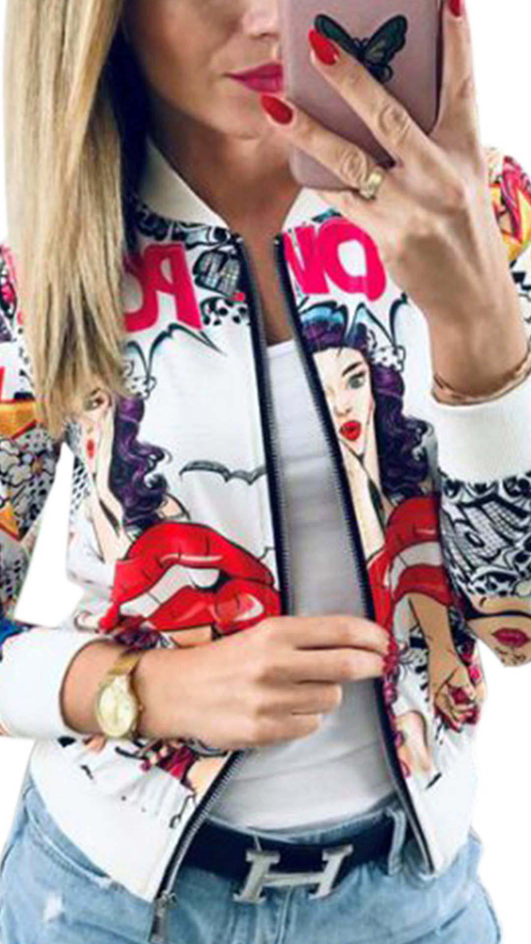 Street Fashion Printed Long Sleeve Baseball Jacket