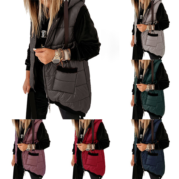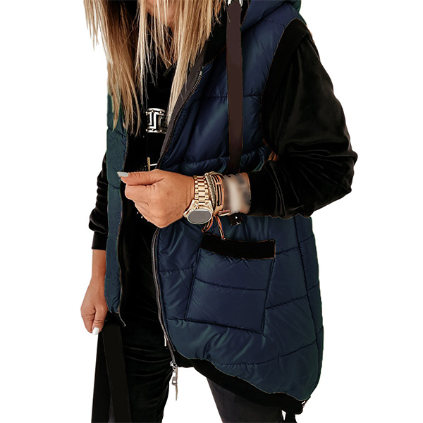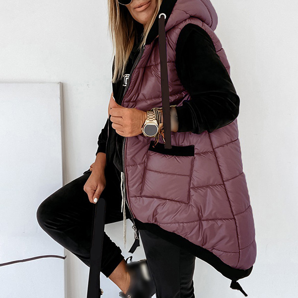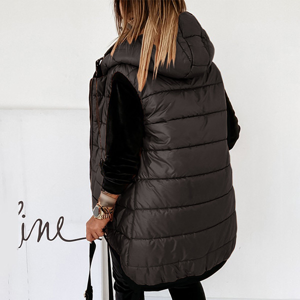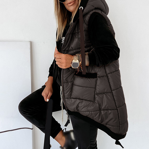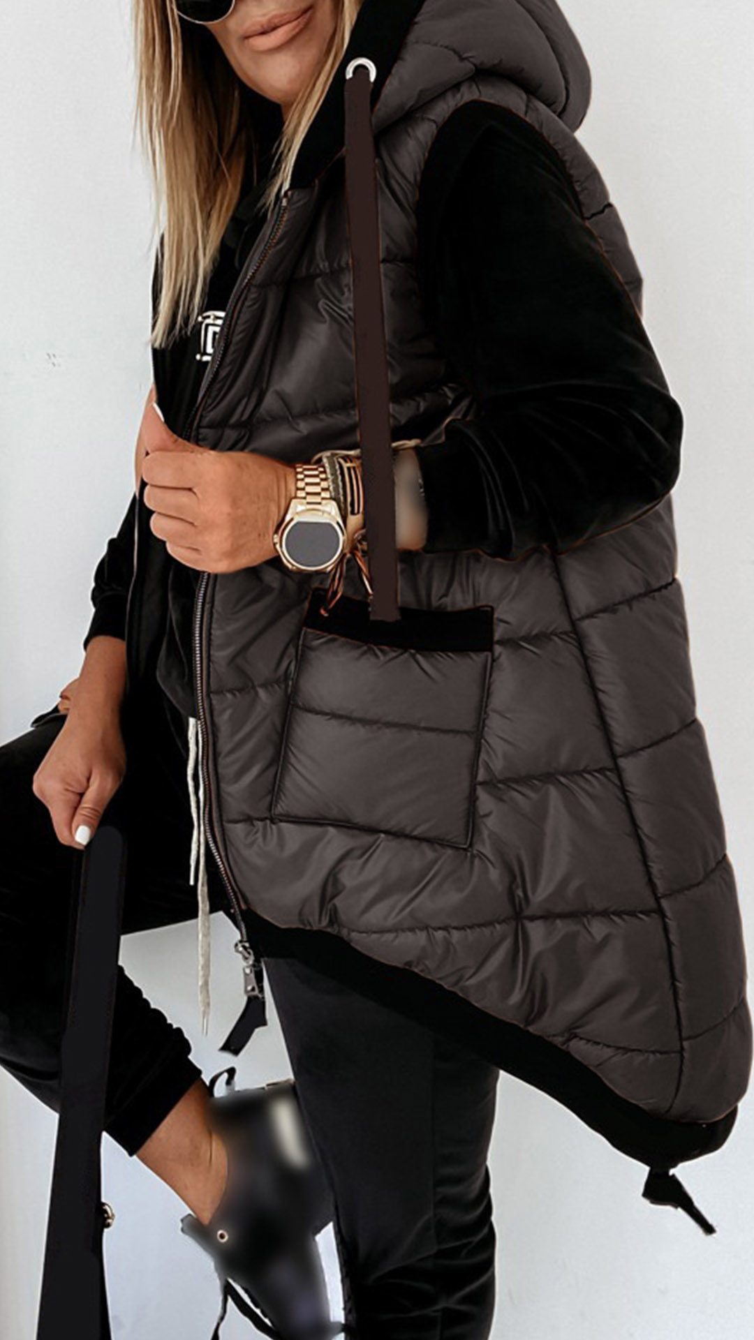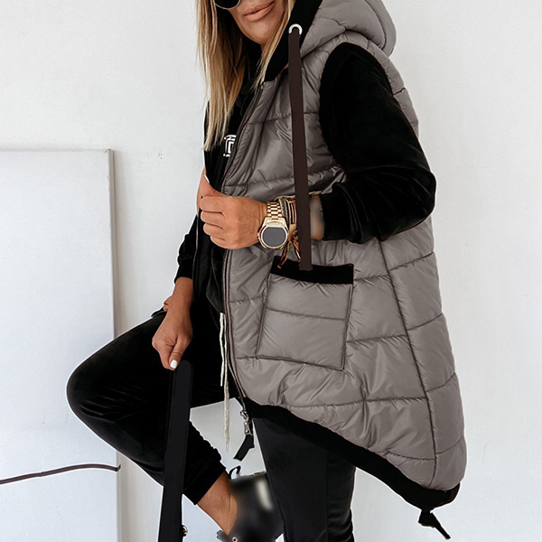 Street Fashion Quilted Hooded Zipper Sleeveless Jacket