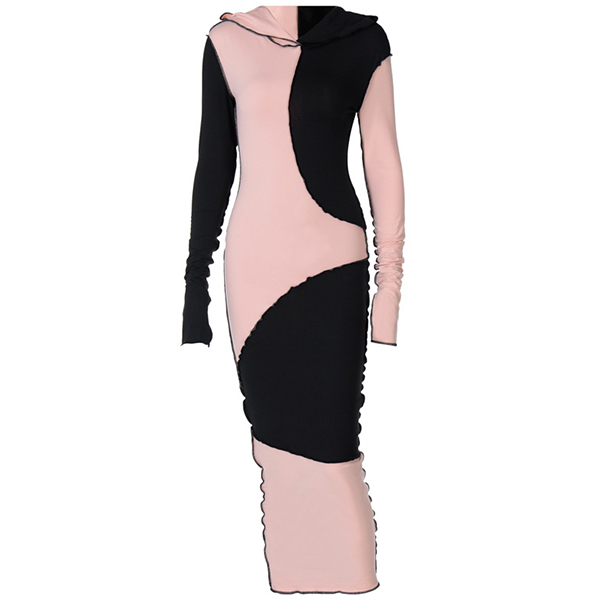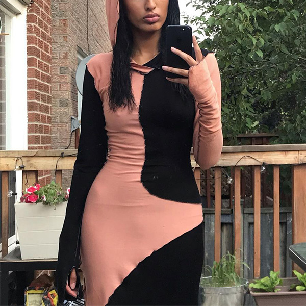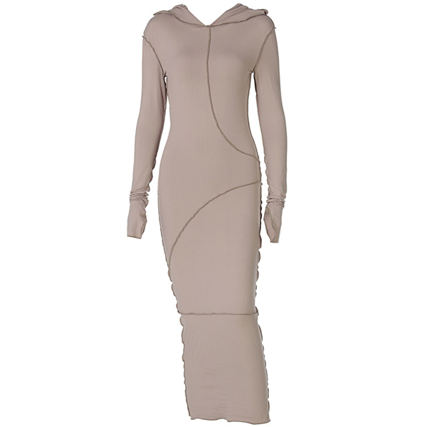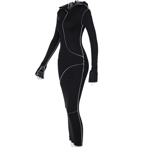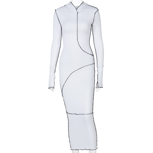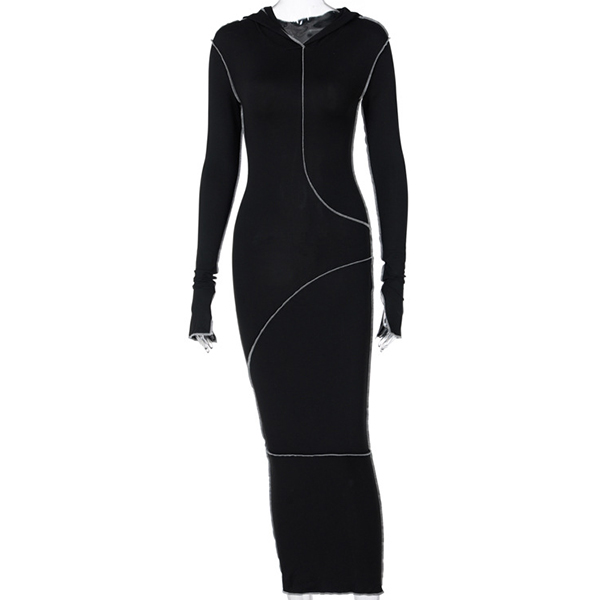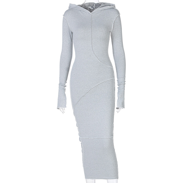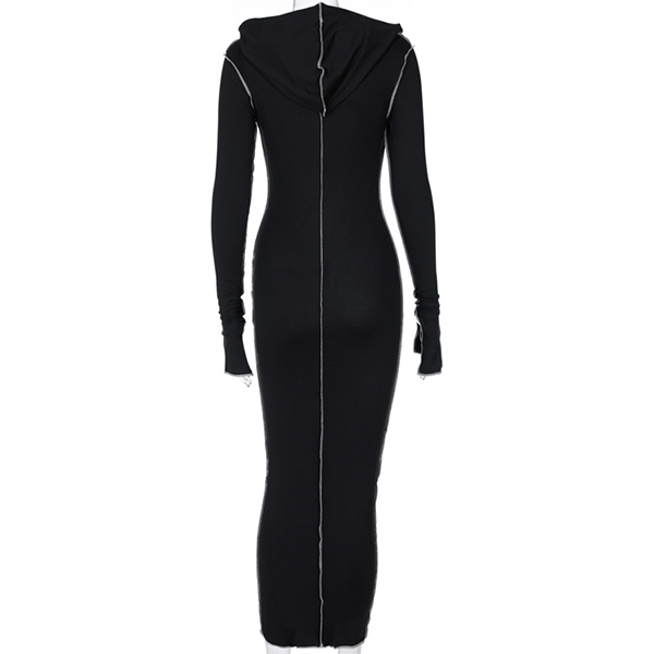 Street Fashion Reverse Seam Hoodied Bodycon Dress